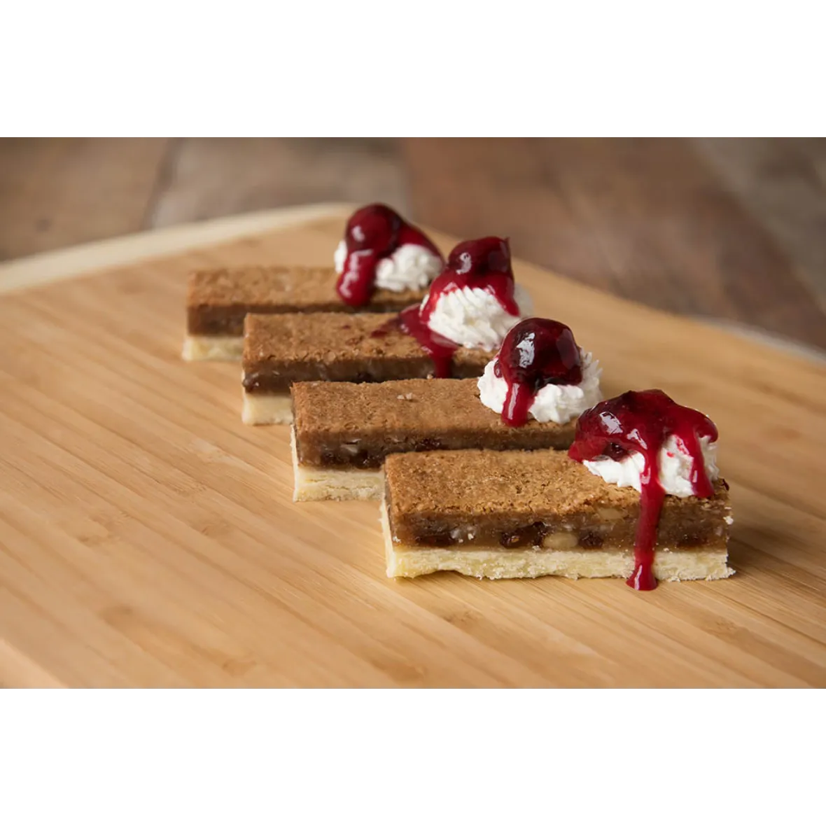 Our signature Buttertart Bar layers plump, sun-baked raisins, crunchy walnuts, and sweet tropical coconut over a delicate, buttery shortbread crust. Baked to a golden finish with a rich caramelized topping, this bar blends nostalgic comfort with elevated craft—each bite a perfect balance of texture and indulgence.