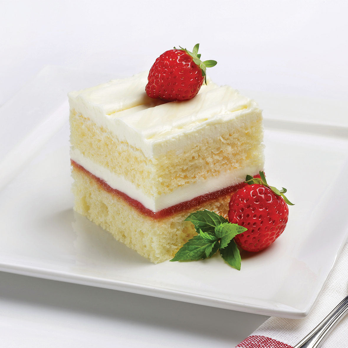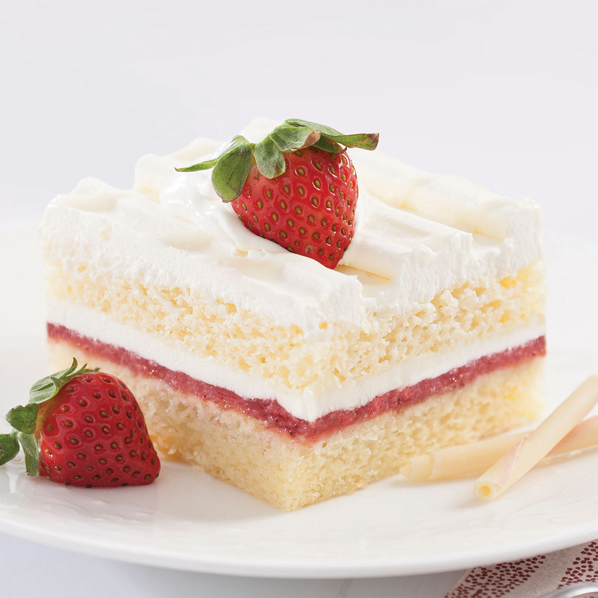 Delight in the light, airy elegance of our gluten-free shortcake, layered with a luscious, real strawberry filling that bursts with natural sweetness. Finished with fresh, velvety whipped cream and a delicate white chocolate drizzle.