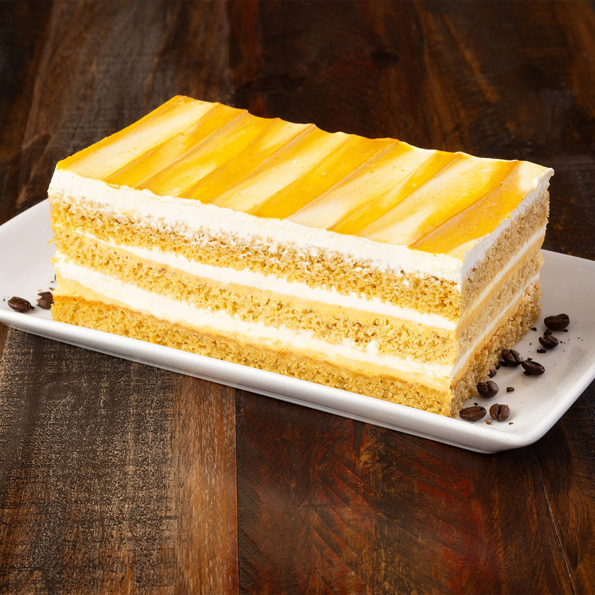 Decadent pumpkin pie–spiced sponge cake is layered with velvety pumpkin mousse and billows of real whipped cream for a warm, comforting indulgence. Finished with a swirl of rich, spiced whipped cream, it’s a festive favorite that captures the essence of fall in every bite.